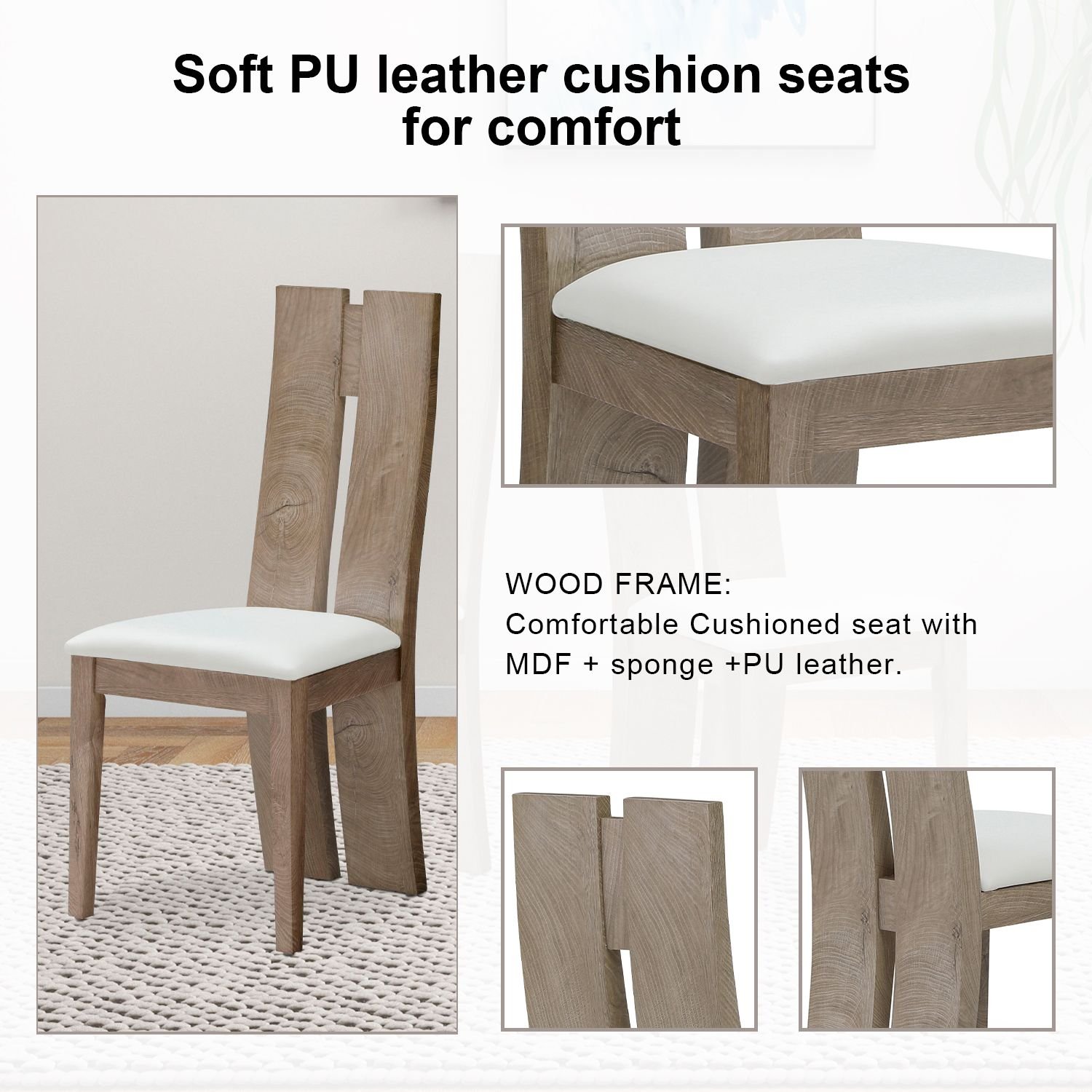 Dining Chair Set of 2 MDF, sponge,Oak,PU Leather Upholstered Cushion Seat Wooden Back Side Chairs.SET OF TWO CLASSIC DINING ROOM CHAIRS: Handsome dining chairs with spindle backs and upholstered seats.Perfect as small office desk chairs or as dining chairs in the kitchen and restaurants, especially for those who love genuine wooden products.SIMPLE SILHOUETTE: Dining room chair crafted from wood.WOOD FRAME: Comfortable Cushioned seat with MDF + sponge +PU leather.Dining Table Set :Pair it with our dining tables and benches to bring home a dining room set. Back DESIGN: The traditional design and comfort makes these chairs suitable for any dining spaces including cafe and restaurants.practical and stylish. with walnut and white finishes that can complement any decorating style and enhance the appeal of any dining room.Features:High elasticity marble sponge cushion for long, comfortable chats over dinner.