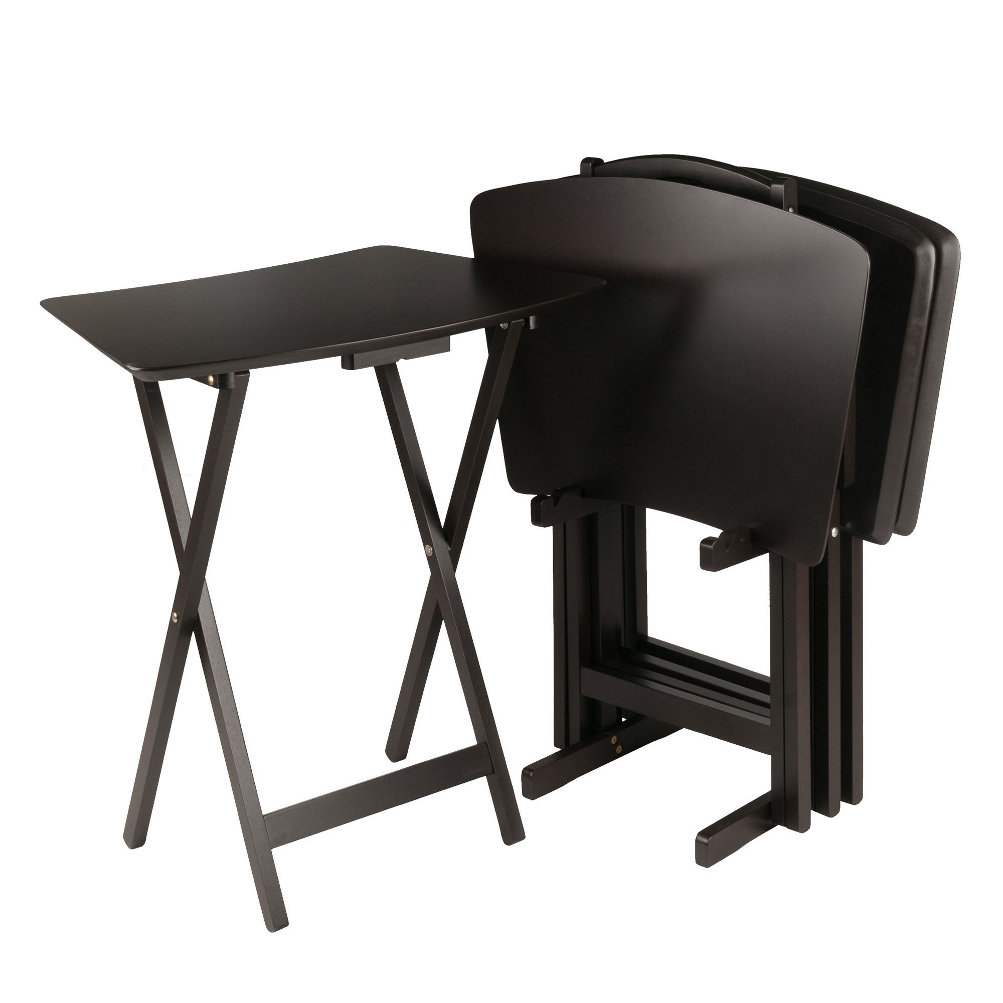 Make entertaining simple and easy with the Winsome Wood Anila 5-Piece Snack Table set. A perfect companion piece for a casual meal in front of the TV or on the patio. These Anila snack tables bring a distinct and enchanting new look to TV trays.