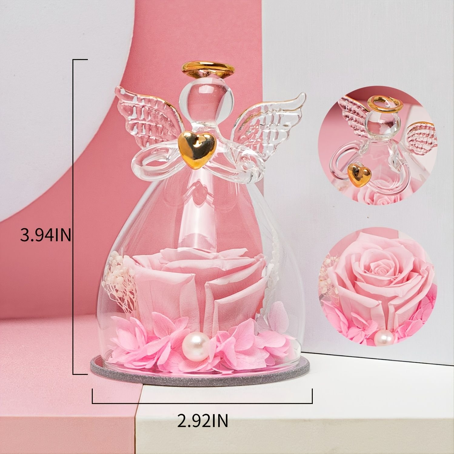 1pc; Birthday Gifts For Women; Preserved Rose In Angel Glass; Mom Grandma Gifts On Mother's Day; Valentine's Day; Wedding; Thanksgiving; Christmas; Ho