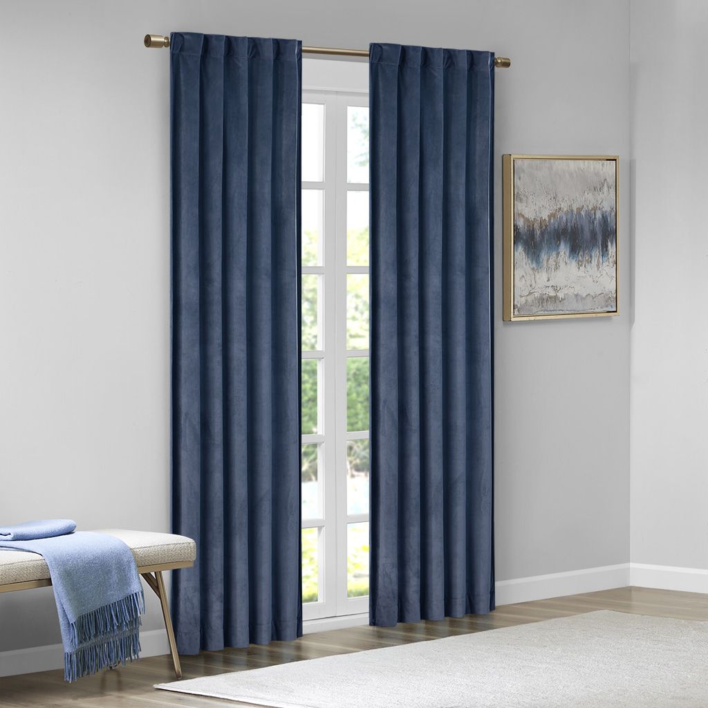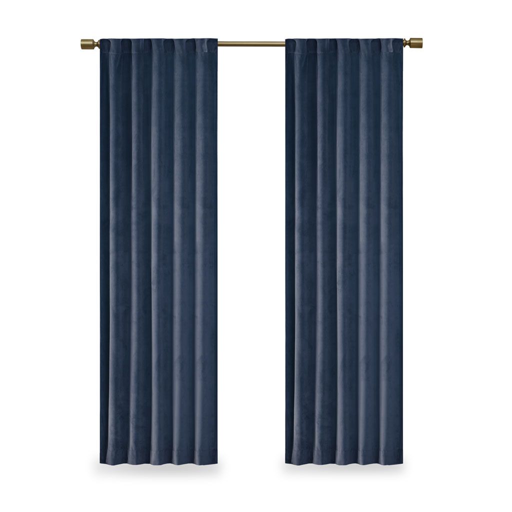 Accentuate your home with the 510 Design Colt Poly Velvet Window Panel Pair. Made from soft solid navy poly velvet, these velvet curtain panels exhibit a light sheen and plush texture that soften your décor. The rich, thick velvet fabric creates a room darkening effect and provides extra privacy. This window panel is also OEKO-TEX certified, meaning it does not contain any harmful substances or chemicals, ensuring quality comfort and wellness. A rod pocket top and back tabs make these room darkening curtains easy to hang while also providing a clean tailored look. Machine washable for easy care, this window panel pair add a luxurious touch to your living room or bedroom. Fits up to a 1.25' diameter rod.
