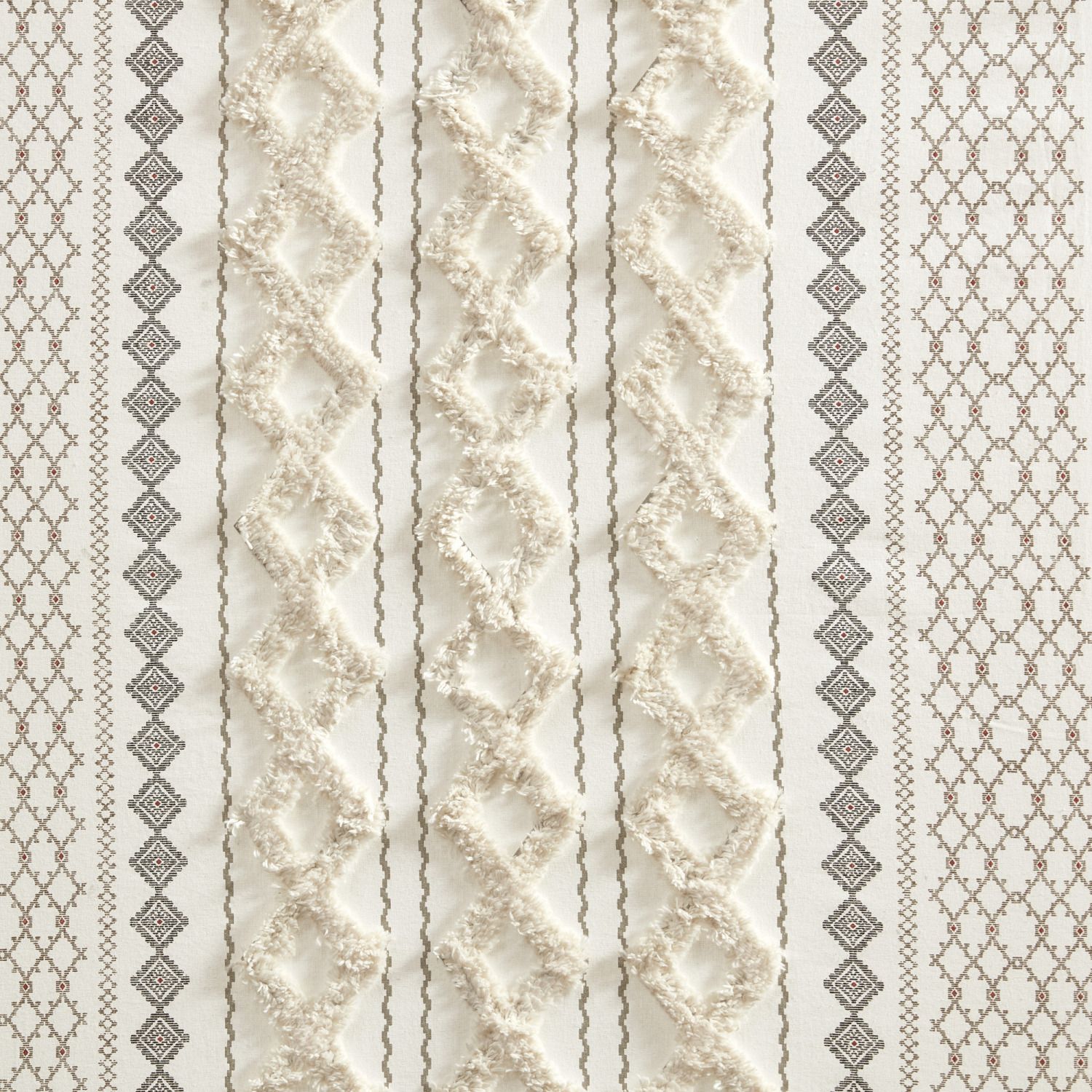 100% cotton printed with tufted chenille stripe trim window curtain panel