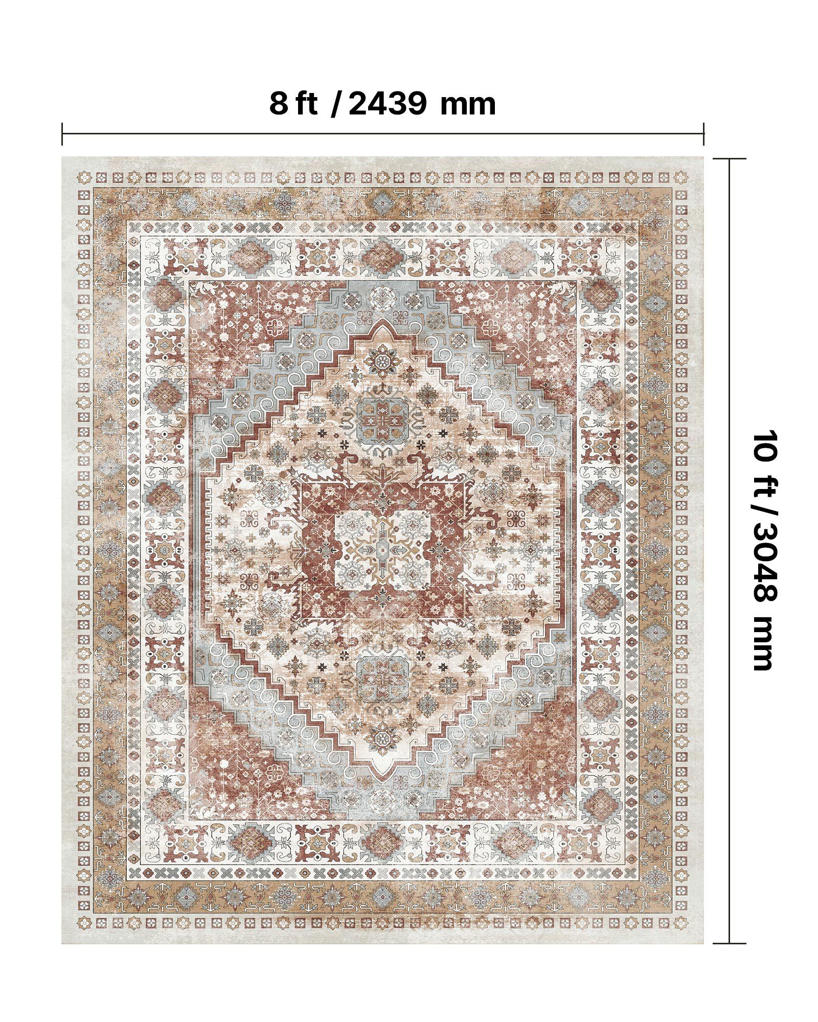 Large Area Rug 8 x 10 ft Anti-Skid Tear-Resistant Floor Mat Vintage Brown Red