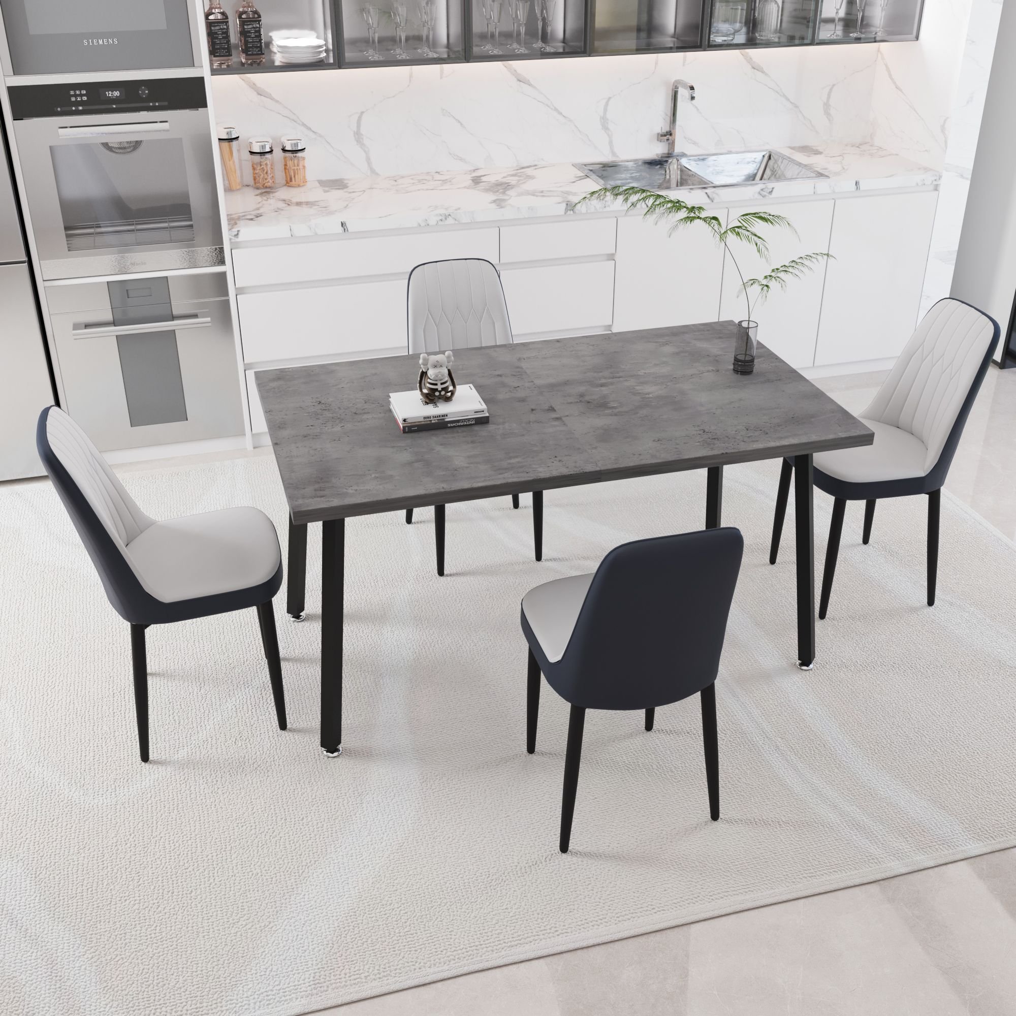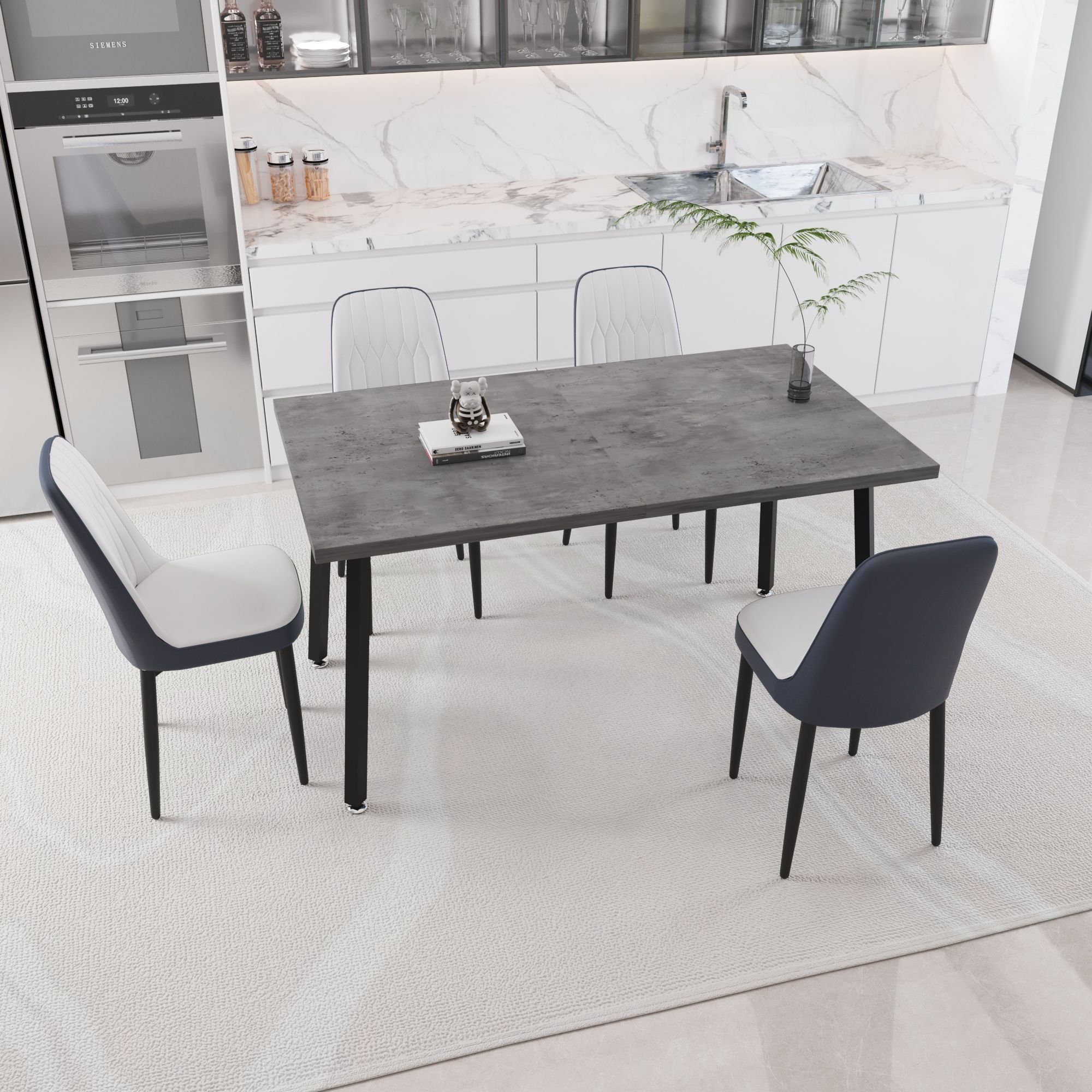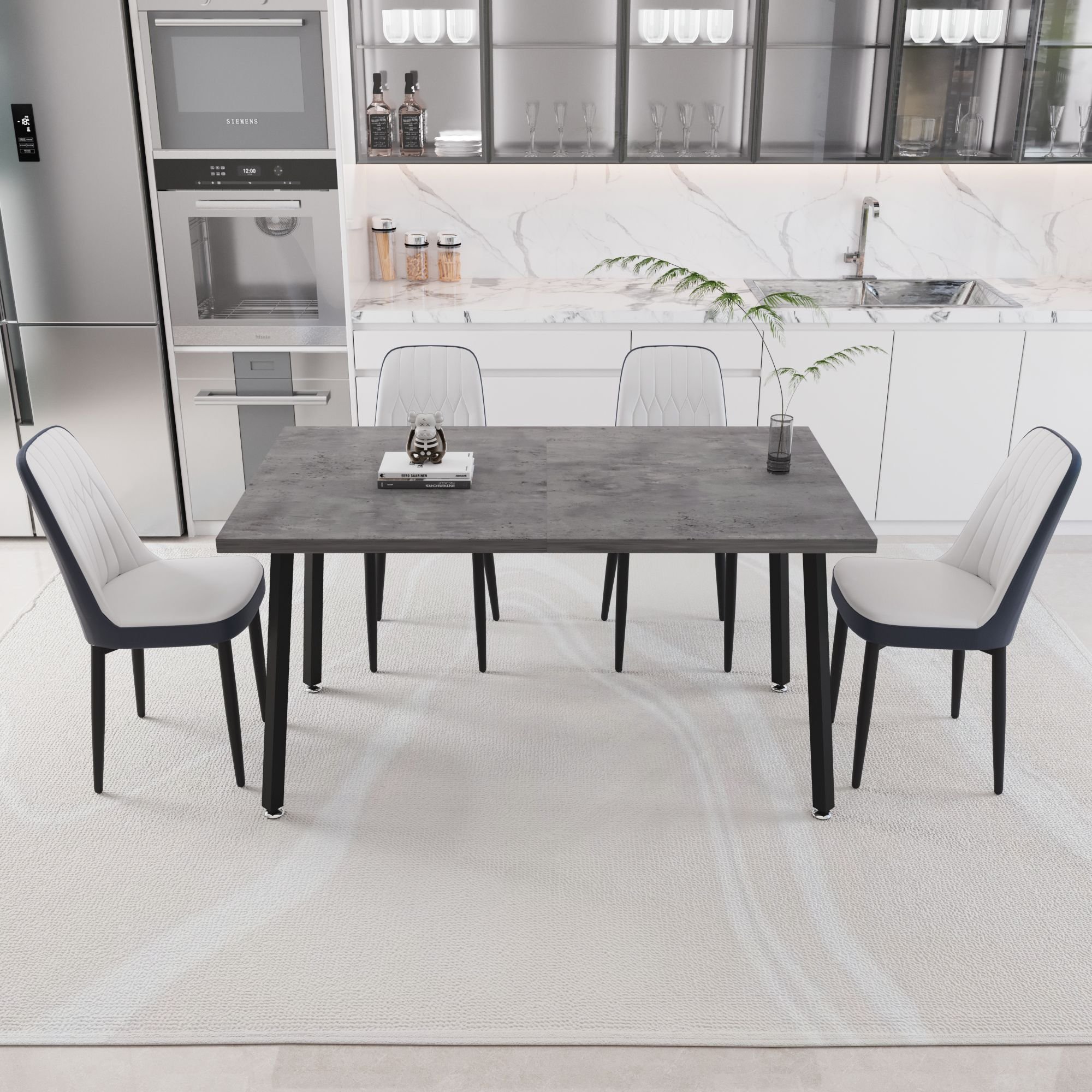 55.12-70.87" expandable rectangular dining table that can accommodate 4-6 people, equipped with 4 PU fabric thick padded dining chairs 55.12-70.87" expandable rectangular dining table that can accommodate 4-6 people, equipped with 4 PU fabric thick padded dining chairs 55.12-70.87" expandable rectangular dining table that can accommodate 4-6 people, equipped with 4 PU fabric thick padded dining chairs