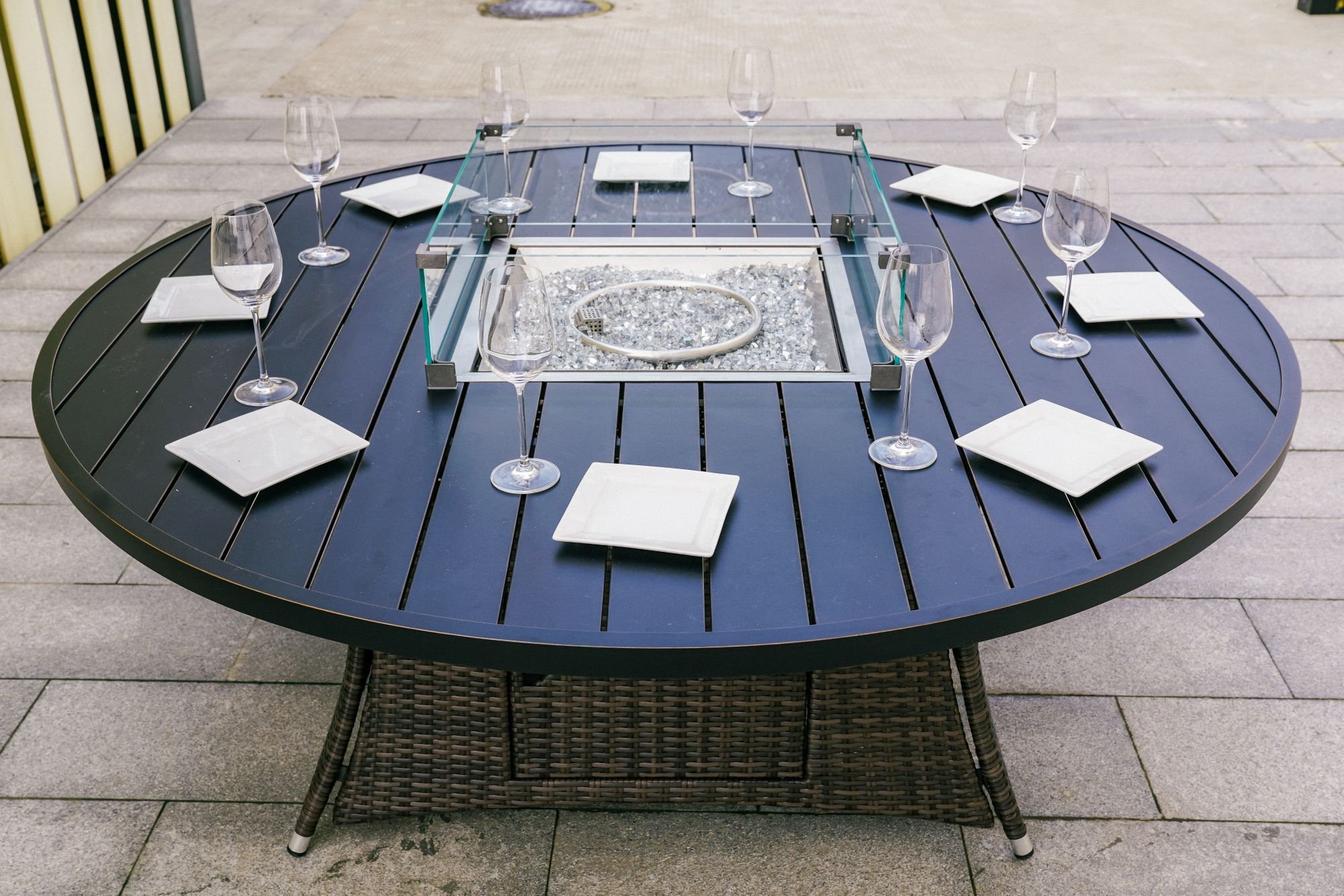 3. The benefits do not end there as you also have the option of adding a BBQ grill plate or integrated drinks cooler. The BBQ grill is simply placed over the flames so that you can enjoy some al fresco dining to enhance your luxury outdoor experience. For those hot sunny days when you feel the need to cool off; just simply add the integrated drinks cooler in place of the fire pit. If you are looking for the ultimate in stylish heating; dining or entertaining; then you have found it with our unique Gas fire pit table.
