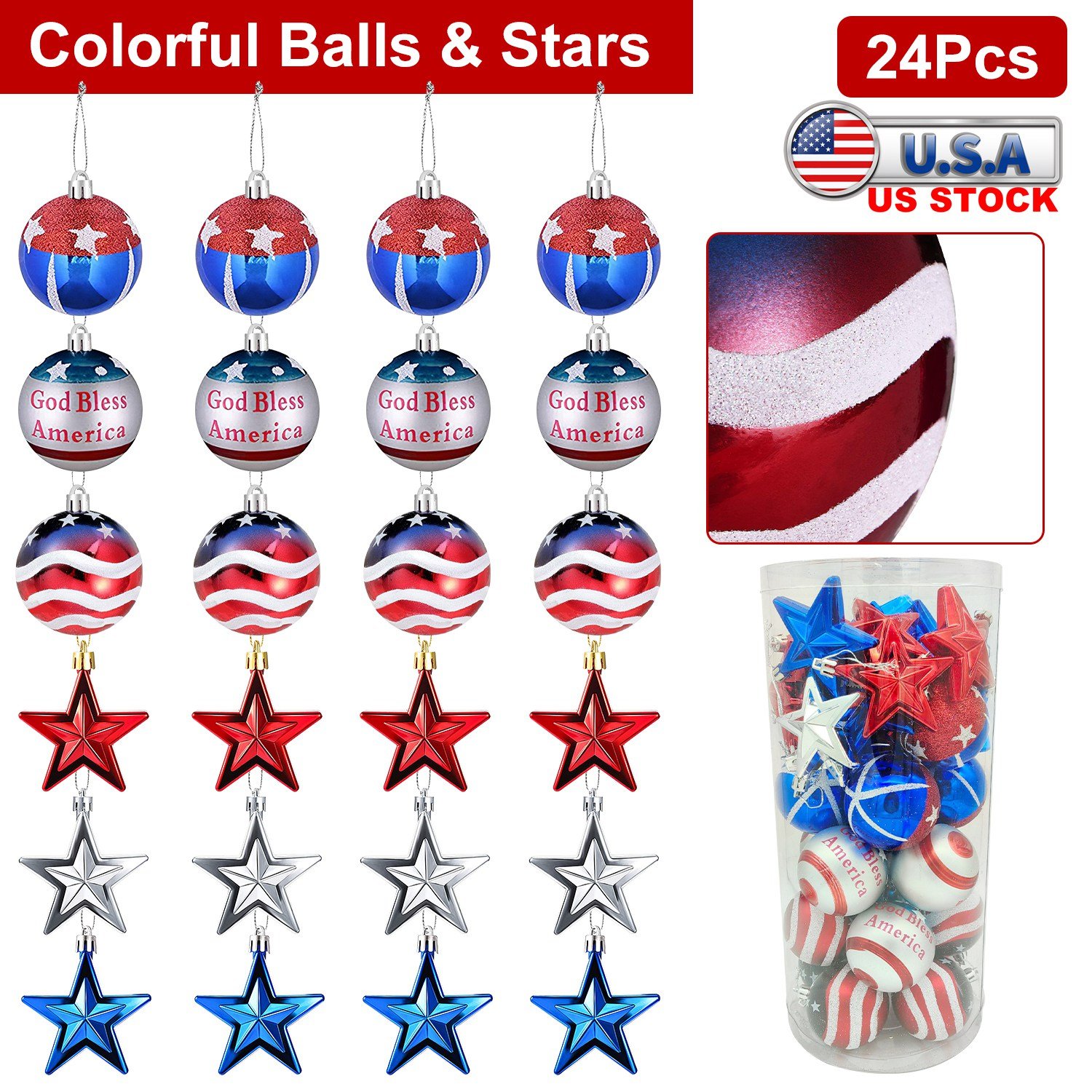 Home > 24Pcs Set Hanging Ornaments Ball Star Patriotic Festival Party Decor Independence Day 4th of July Christmas Tree Wall Indoor Outdoor Decoration