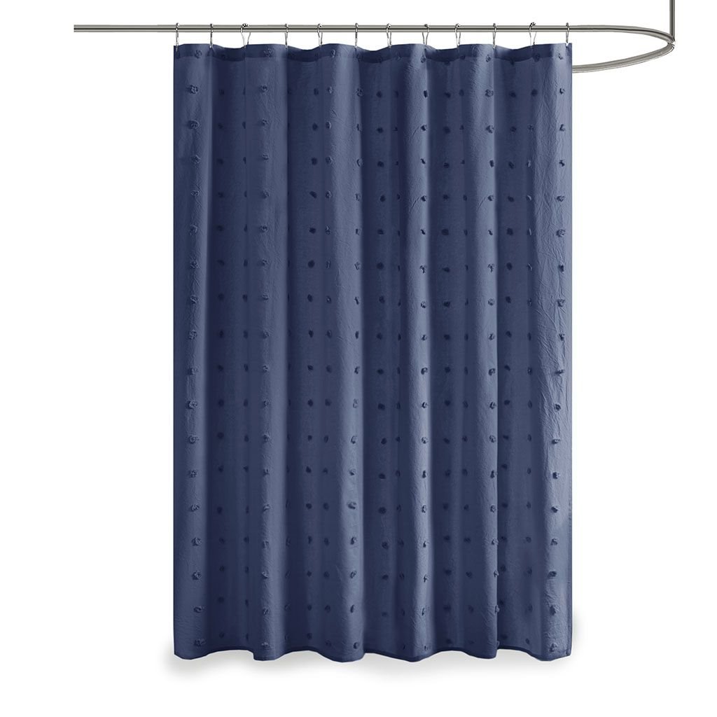 Create a shabby chic look in your bathroom with the Urban Habitat Brooklyn Cotton Yarn Dyed Jacquard Pom Pom Shower Curtain. This 100% cotton shower curtain features a soft indigo blue hue with an all-over pom pom tuft design that creates a beautiful texture and fresh tonal pattern. Measuring 70x72 inches, the shabby chic shower curtain softens your bathroom décor and is machine washable for easy care. This shower curtain is also OEKO-TEX certified, meaning it does not contain any harmful substances or chemicals, ensuring quality comfort and wellness. Coordinate with bedding collections, window treatments, and decorative pillows that are sold separately to complete your décor.
