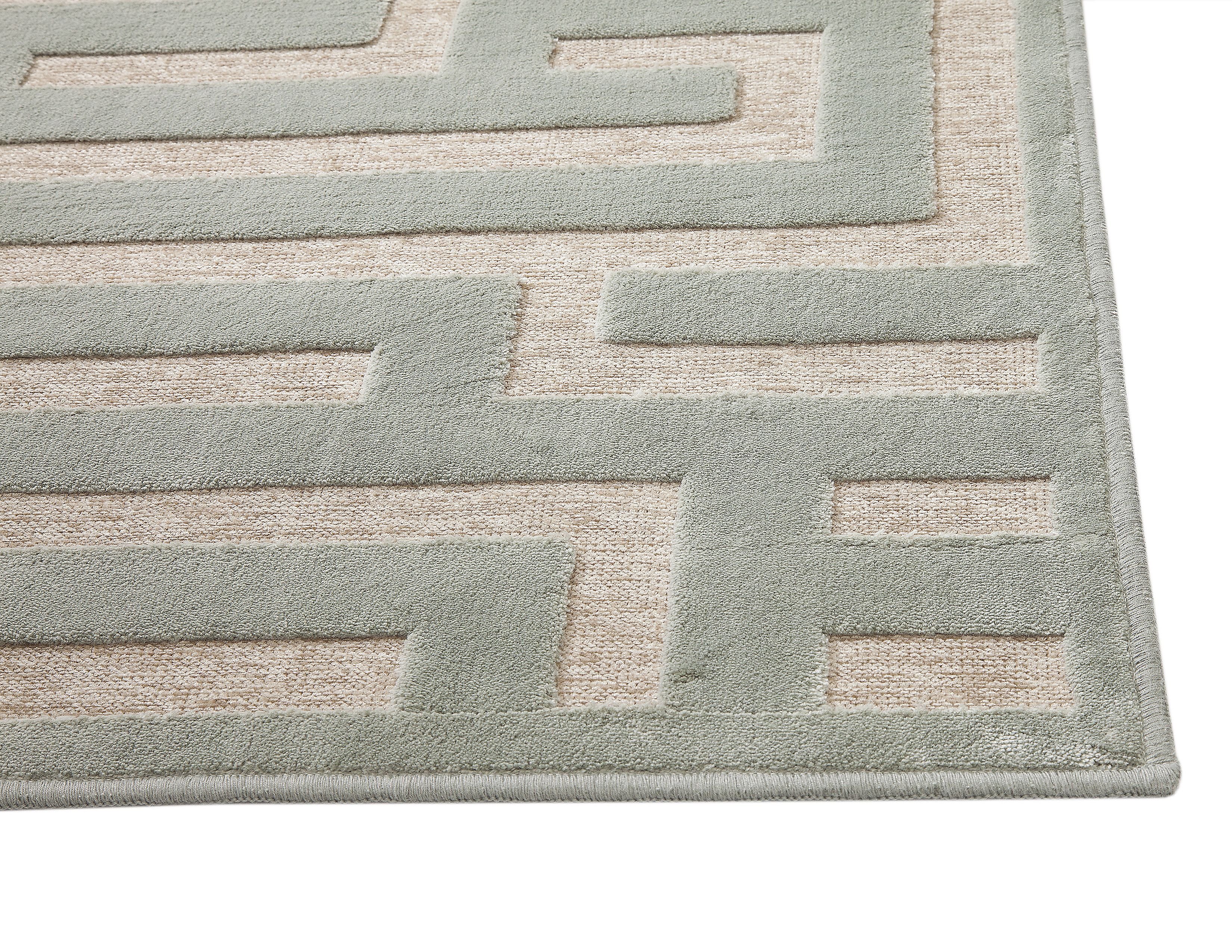 The Maze Lt. Blue and Grey Area Rug merges innovative weaving technology with beautiful materials and design. combines a ground chenille base with a raised viscose pattern to maximize depth and texture in this collection. The collection will bring a classic high-end designer look to any room setting.Materials: Chenille Base/Viscose Contour6069 has a Grey base with a soft light blue maze pattern on top.Machine woven with a ground chenille base and raised viscose patternFlat pile with high / low textureContains Latex: YesSize (ft/in): 7'10" x 10'10"Care Instructions: Vacuum your rug regularly. Some initial shedding of the wool pile is normal and will not affect the life of the rug. Clean spills immediately by blotting any liquid with a clean, dry, un-dyed cloth. If heavily soiled, rugs may be cleaned professionally. Do not pull any loose ends; any frayed edges can be trimmed with scissors, if needed. Use a rug pad for even wear, increased protection, and to prevent slippage.