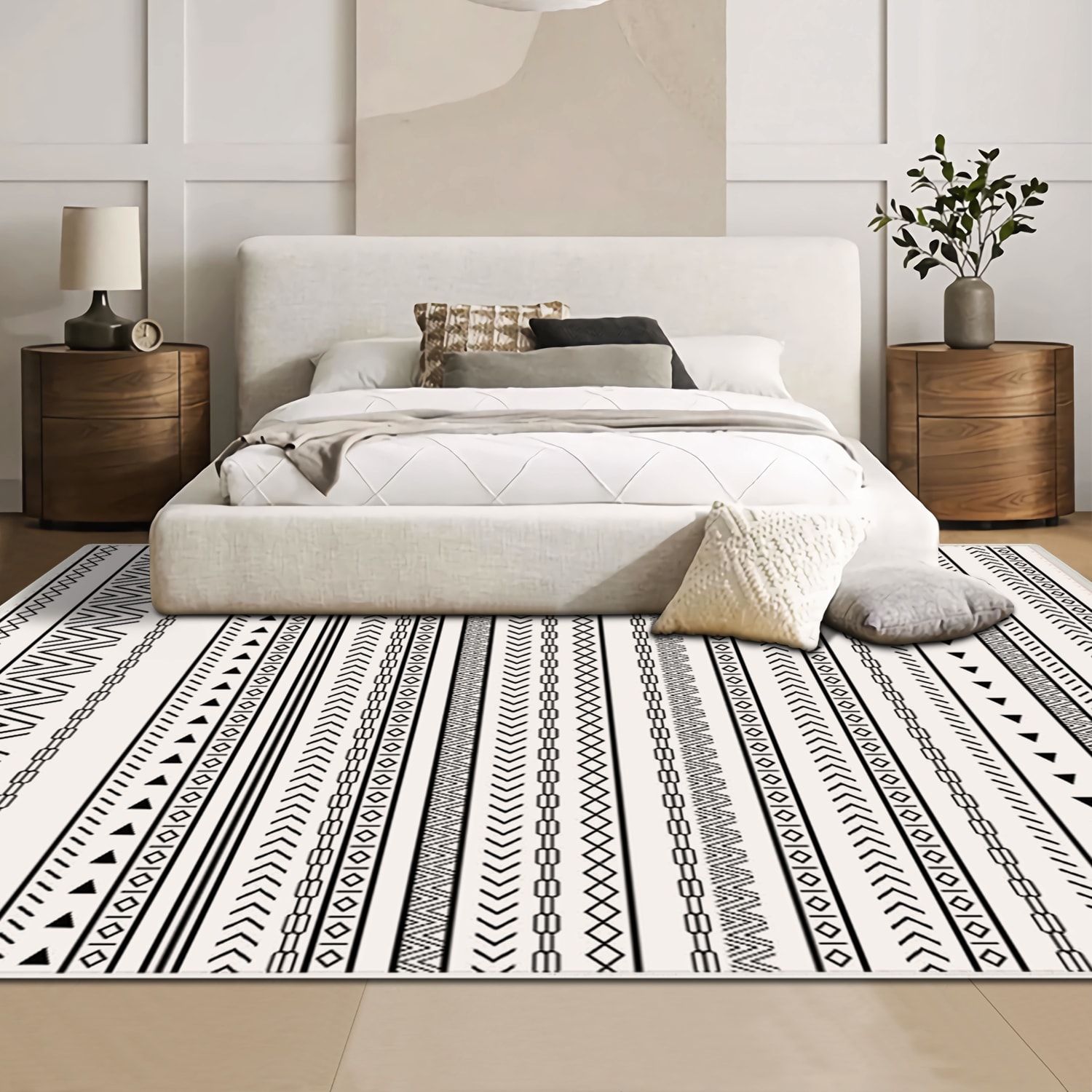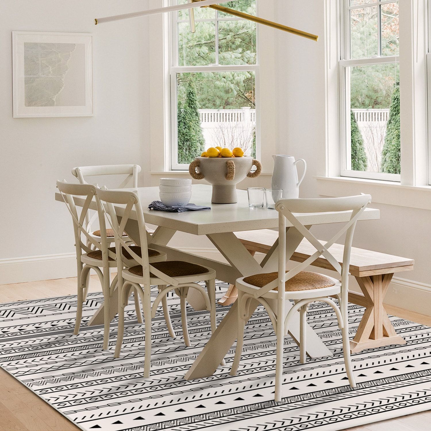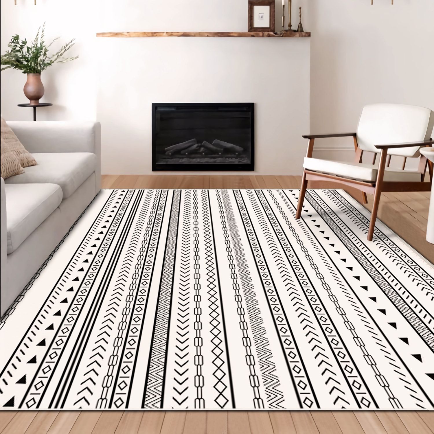 • ��[PERFECT FOR HOME DECOR] This Boho Area Rug has a neutral color and patterned with simple geometric lines.This contemporary designed rug blends perfectly with your home, suitable for the living room, bedroom, dining room, laundry room, entryway, kids' room, playroom, kitchen and office.