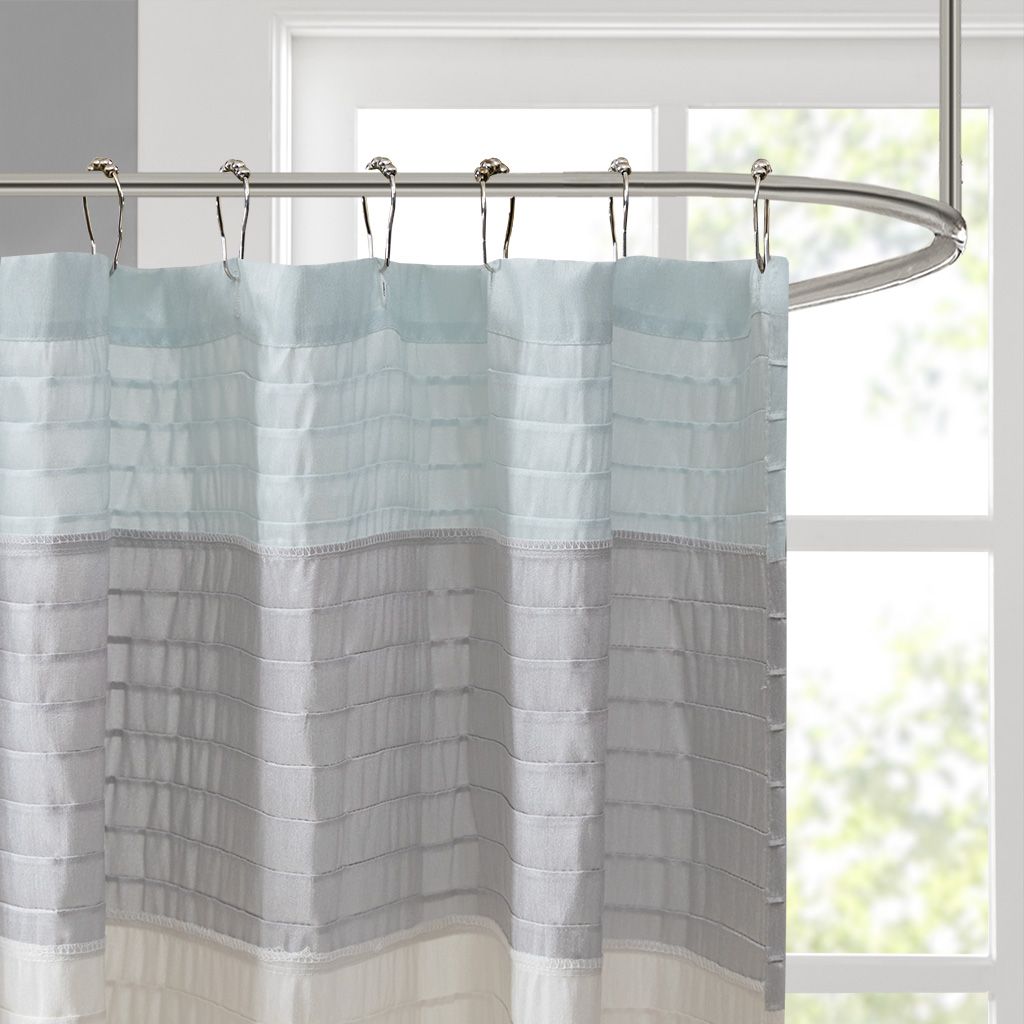 Easily transition your bathroom with this simple, yet beautifully classic shower curtain. The faux silk dupioni fabric has a natural light sheen and drapes beautifully, while also machine washable for easy care. This lightweight shower curtain features pieced and pintucking details creating a rich texture and a unique color block design, sure to freshen up any space. Pattern layout may vary due to variation of sizes. A water repellant liner is not included, and highly recommended. Complete the collection and look with coordinate bath decor, bedding, and window decor - available and sold separately.