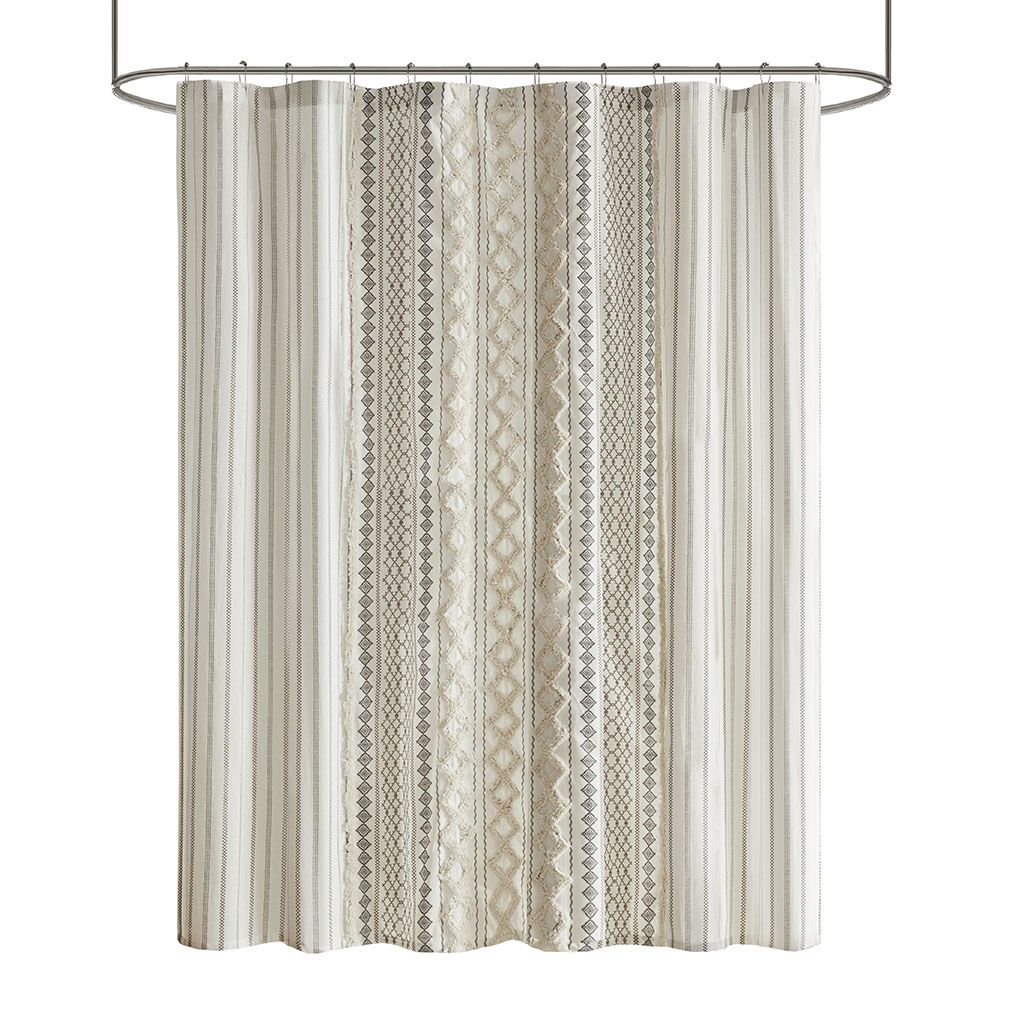 Elevate the look of your bathroom with the INK+IVY Imani Cotton Printed Shower Curtain with Chenille Stripe. This 100% cotton shower curtain features a globally inspired Aztec print with a cotton chenille trim that adds a sophisticated touch. Machine washable for easy care, this shower curtain is also OEKO-TEX certified meaning it does not contain any harmful substances or chemicals for the best in quality comfort and wellness. Each shower curtain measure 72"x72" and is finished with 12 button holes at the top making it easy to hang; hooks, rod, and a water repellant liner are not included and will need to be purchased separately. Complete the look with coordinating bedding, available and sold separately.