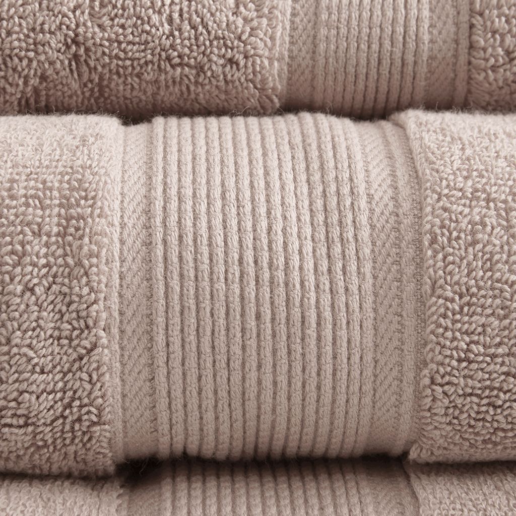 Provide a fresh update to your bathroom with our luxurious Madison Park Signature 800GSM Cotton 8PC Bath Towel Collection. This spa-like quality towel set is made of premium long staple cotton that is highly absorbent and creates a luxuriously soft feel, while the double ply loop construction increases thickness, absorbency, and ensures less lint. Each towel is finished with a silvadur antimicrobial treatment providing built in freshness protection, inhibiting growth of odor causing bacteria, and keeping linen newer, longer. Active for multiple washes, this treatment delivers long-lasting durable odor protection performance. In addition, these towels are also made in green by OEKO-TEX certified, meaning they do not include any harmful substances or chemicals while also using sustainable processes and socially responsible working conditions, for the best in quality comfort and wellness. Finished with double-stitched side hems for long lasting durability, these towels are available in a variety of colors; to easily match your decor with a complimenting color or mix and match to create a distinctive style. Set includes: 2 generously oversized 30x54" bath towels, 2 standard 16x28" hand towels, and 4 standard 13x13" wash towels. Coordinate bath sheet set in selected colors, is available and sold separately.
