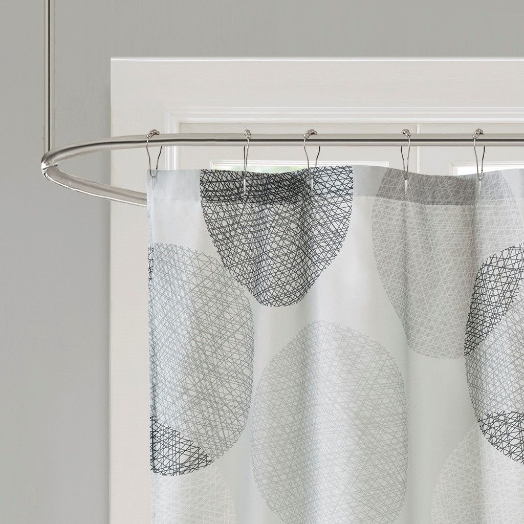 Knowles instantly updates your bathroom for a clean modern look. A circular print in different shades of gray covers this soft gray light weight shower curtain. Each shower curtain measure 72"x72" and is finished with 12 button holes at the top making it easy to hang; hooks, rod, and a water repellant liner are not included and will need to be purchased separately.